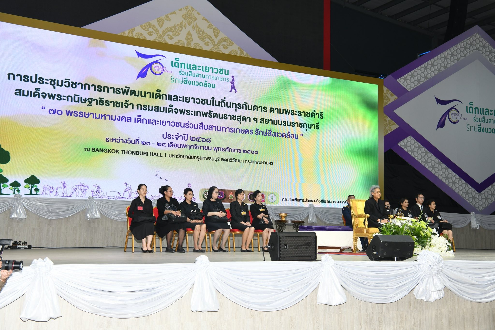 สมเด็จพระกนิษฐาธิราชเจ้า กรมสมเด็จพระเทพรัตนราชสุดา ฯ สยามบรมราชกุมารี เสด็จพระราชดำเนินเป็นการส่วนพระองค์ไปเปิดการประชุมวิชาการเด็กและเยาวชนในถิ่นทุรกันดาร ตามพระราชดำริฯ ประจำปี 2568 ในธีมงาน “70 พรรษามหามงคล เด็กและเยาวชนร่วมสืบสานการเกษตร รักษ์สิ่งแวดล้อม” จัดขึ้นระหว่างวันที่ 23-24 พฤศจิกายน พ.ศ. 2568 ณ หอประชุม BANGKOK THONBURI HALL มหาวิทยาลัยกรุงเทพธนบุรี เขตทวีวัฒนา กรุงเทพมหานคร โดยปีนี้จัดขึ้นเป็นครั้งที่ 11 มีกรมส่งเสริมการปกครองท้องถิ่น เป็นเจ้าภาพหลักในการจัดงาน ร่วมกับหน่วยงานสถานศึกษาภายใต้โครงการพัฒนาเด็กและเยาวชนในถิ่นทุรกันการ ตามพระราชดำริ และโครงการส่วนพระองค์สมเด็จพระกนิษฐาธิราชเจ้า กรมสมเด็จพระเทพรัตนราชสุดา ฯ สยามบรมราชกุมารี ดำเนินการจัดงาน ทั้งนี้เพื่อเผยแพร่พระราชกรณียกิจด้านการศึกษาและการพัฒนาเด็กและเยาวชนในถิ่นทุรกันดารแก่สาธารณชน รวมทั้งบุคลากรทางการศึกษาและผู้ปฏิบัติงานโครงการตามพระราชดำริได้มีโอกาสแลกเปลี่ยนความคิดประสบการณ์ร่วมกัน เพื่อพัฒนาแนวคิดและร่วมกันดำเนินงานให้บรรลุผลตามเป้าหมาย ทรงทอดพระเนตรนิทรรศการเฉลิมพระเกียรติสมเด็จพระนางเจ้าสิริกิติ์ พระบรมราชินีนาถ พระบรมราชชนนีพันปีหลวง นิทรรศการเฉลิมพระเกียรติสมเด็จพระกนิษฐาธิราชเจ้า กรมสมเด็จพระเทพรัตนราชสุดา ฯ สยามบรมราชกุมารี และ ทอดพระเนตรการนำเสนอผลงานแนวปฏิบัติที่ดีรายด้าน 6 ด้าน